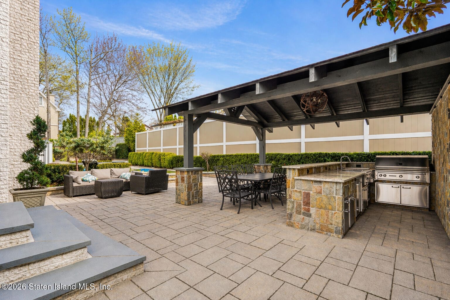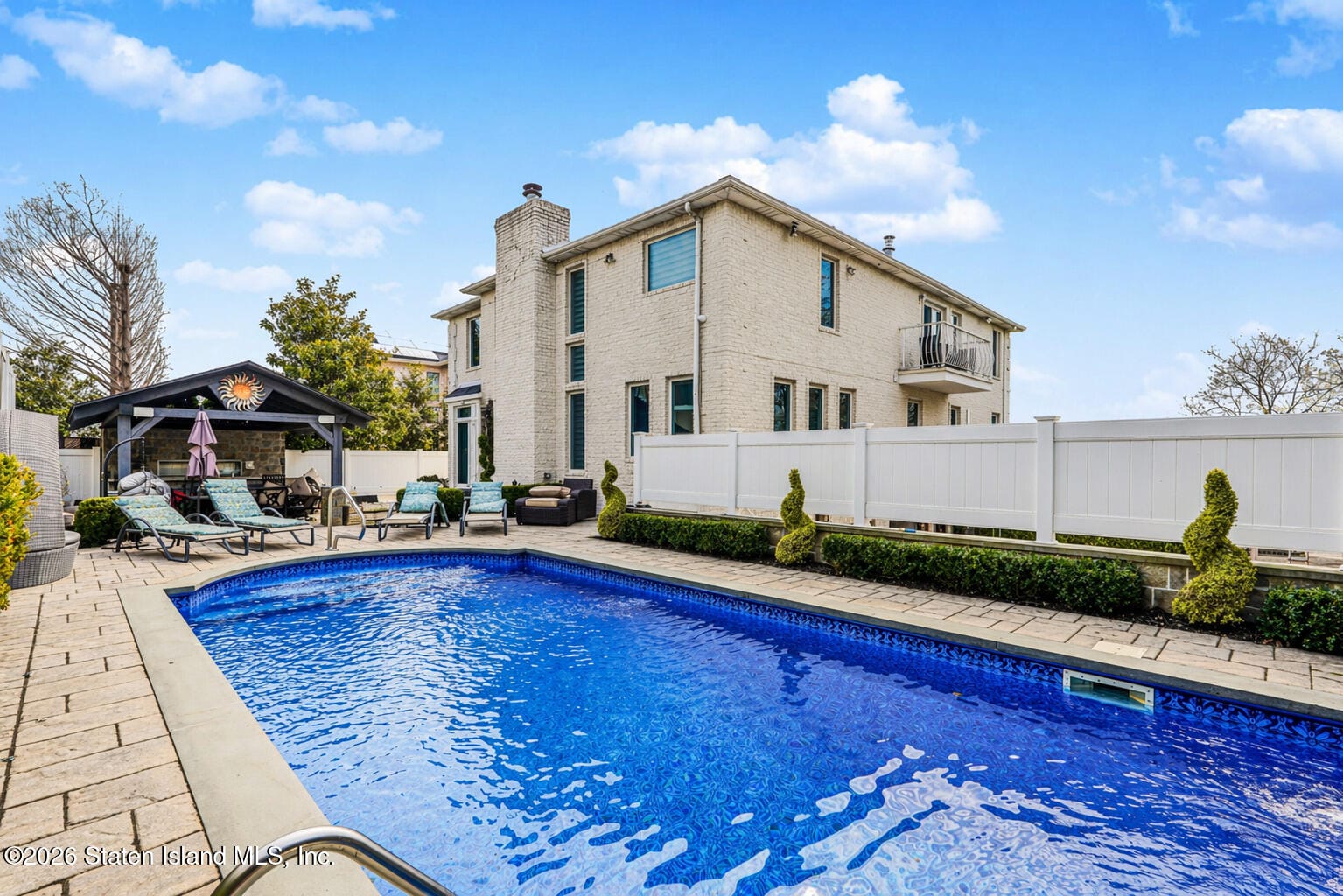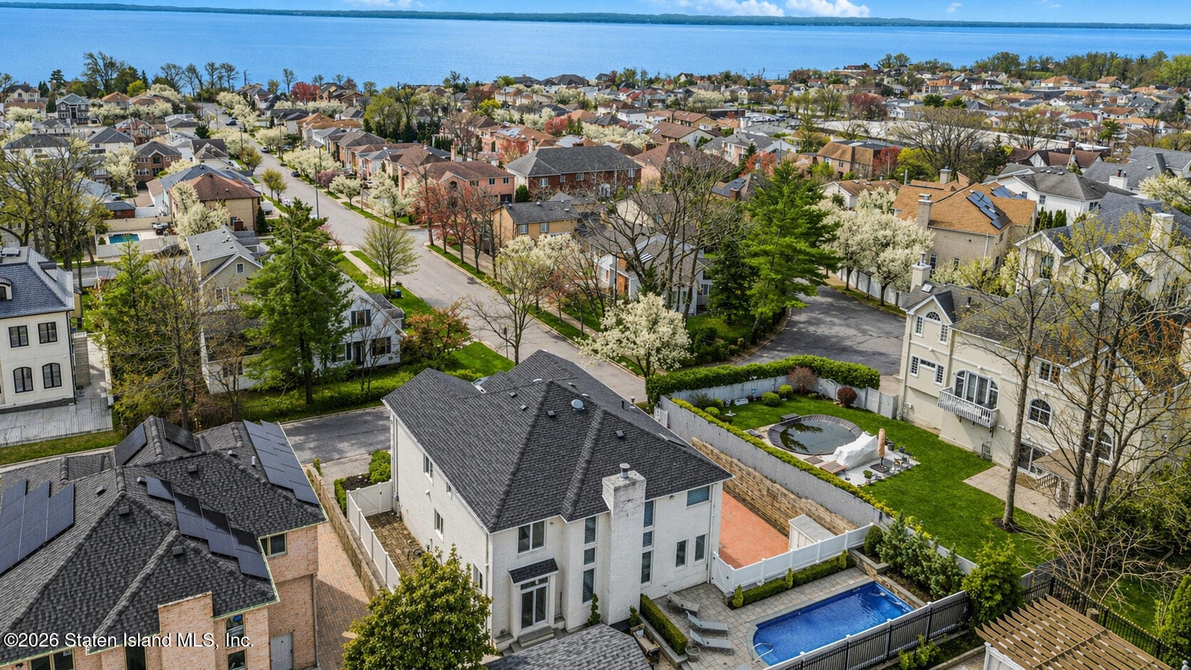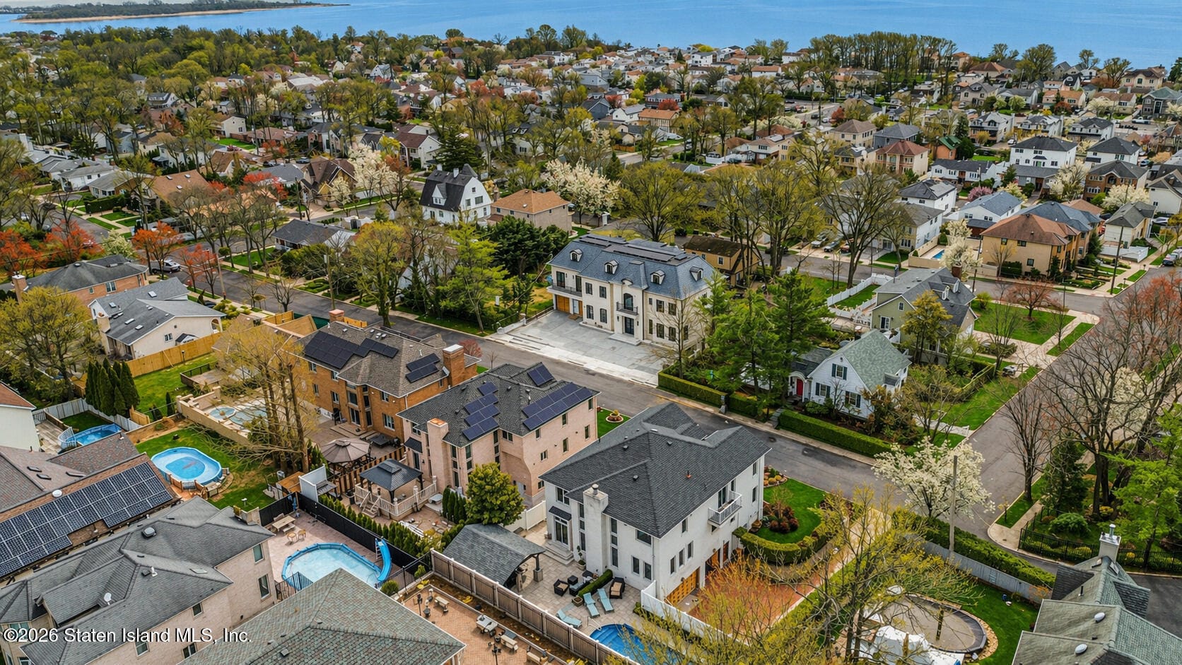 Welcome to 119 Lenzie Street! This gorgeous and fully renovated, full-brick, 4-bedroom, 4-bathroom, Center-Hall Colonial Home with a 3-car garage, and a resort-style backyard is situated on a large 80ftx100ft property in beautiful S.E. Annadale. This amazing home offers exceptional craftsmanship and high-end trims and finishes throughout. Featuring a grand open layout, main level with a stunning custom gourmet kitchen designed by NEFF of Short Hills with high-end appliances, rich hardwood floors, detailed crown molding, and a dramatic 2-story great room with soaring ceilings, and a fireplace. The luxurious primary suite boasts a private balcony with panoramic ocean views, spacious walk-in closet, and a beautifully designed 4-piece bath with a double vanity. Three additional large bedrooms and a full bath complete the second level. The full- finished basement includes a summer kitchen, full bath, sauna, and separate entrance, offering flexible space for extended living or entertaining. The backyard is a true private oasis, fully paved and complete with an inground heated salt-water pool, custom outdoor kitchen, covered pergola, and a built-in fireplace. Additional features include a drive way big enough for 6 cars, radiant heated floors on the main level and primary bedroom, and landscaping designed and installed by Rock Solid. Conveniently located on a quiet street and surrounded by custom homes, close to parks, schools, shopping, restaurants, and public transportation. This is a rare opportunity to own a true luxury home in one of Staten Island’s most sought-after neighborhoods!