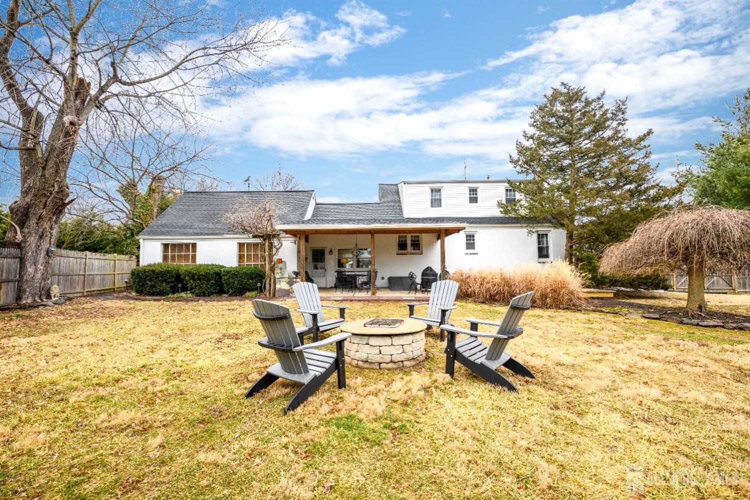 Charming and beautifully maintained, this stone-front Cape Cod blends timeless character with modern upgrades. Featuring elegant period moldings and detailed trim work, this home showcases quality craftsmanship throughout. The inviting living room, complete with a wood-burning fireplace, offers a cozy retreat, while the sunlit library/office provides a perfect work-from-home space. The updated kitchen and baths add contemporary convenience, including heated floors in the main bathroom. Special touches like plantation shutters and a breezeway mudroom enhance both style and function. Step outside to a picturesque, fenced-in backyard with a covered patio, mature trees, lush plantings, and a serene water garden. A two-car garage and circular driveway complete this must-see home!