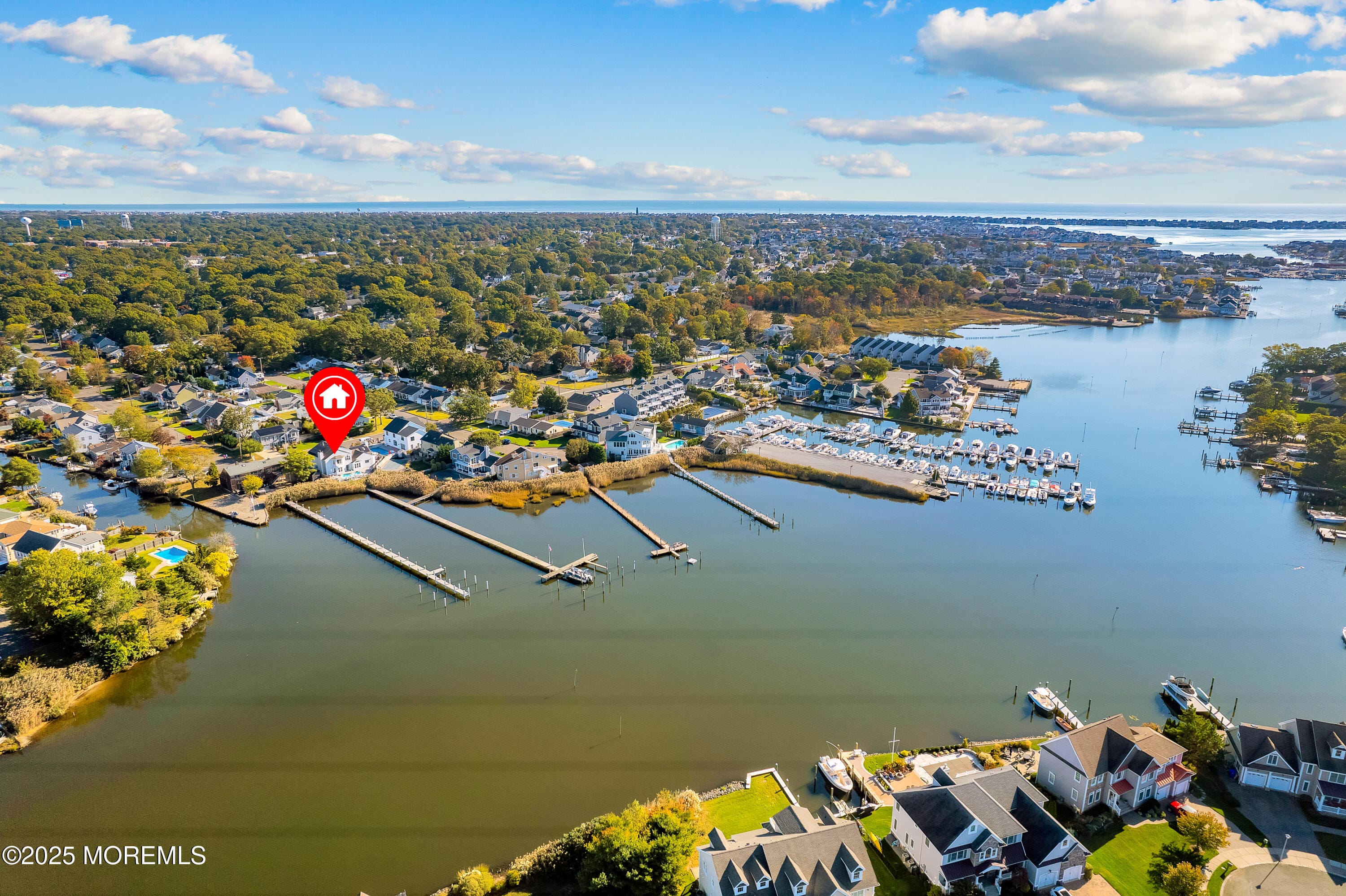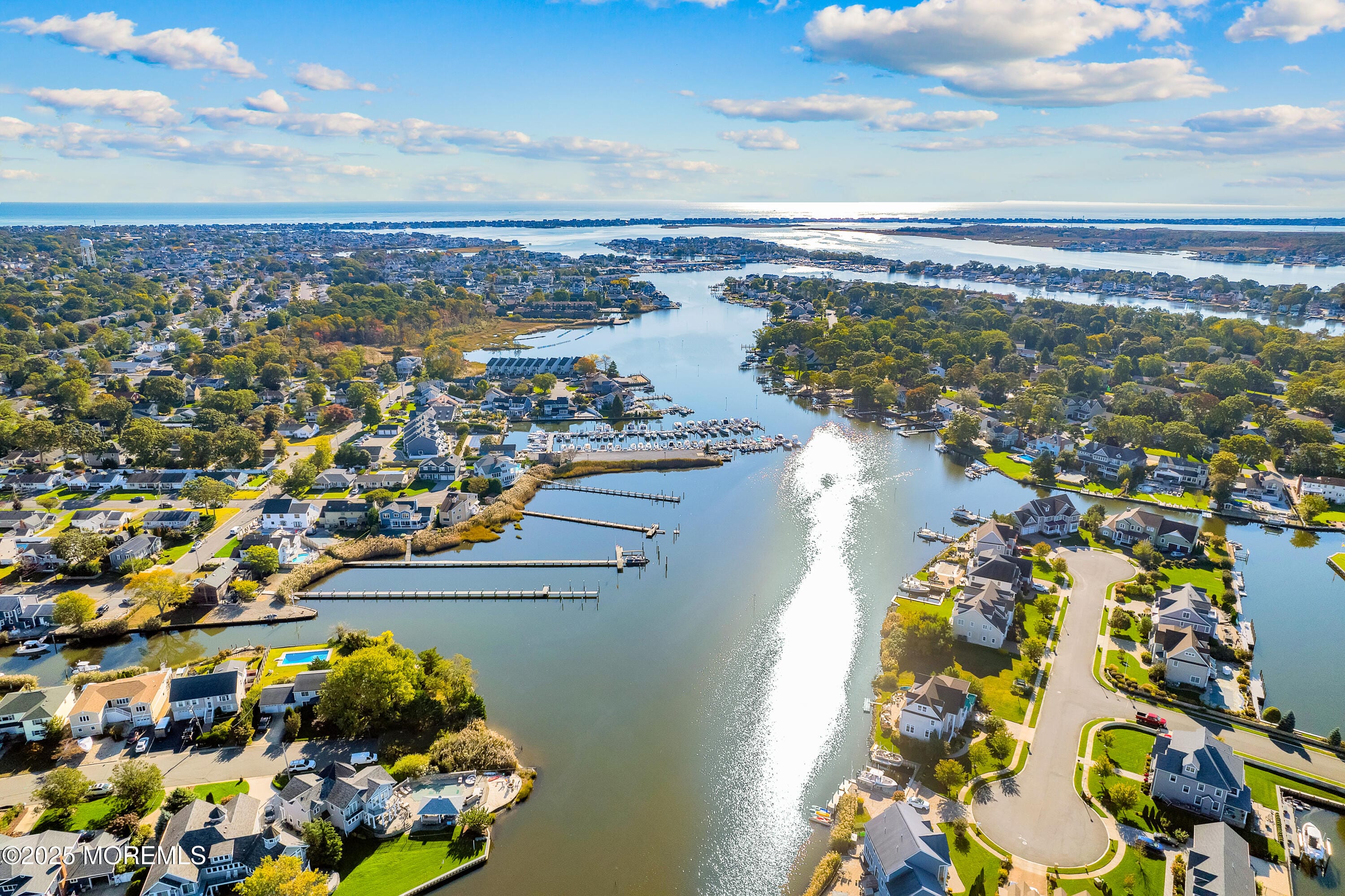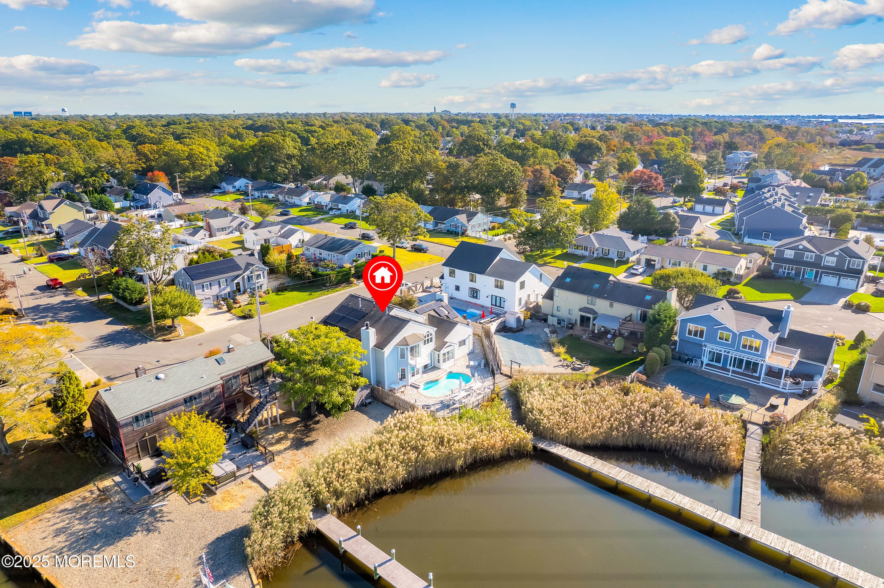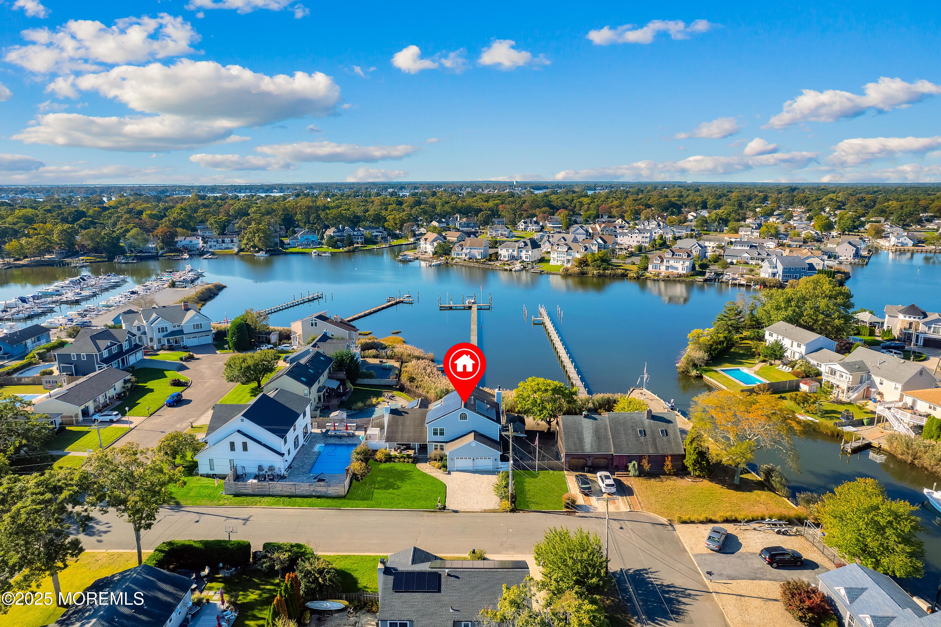 Enter into this elegant 3,500 sq ft custom, luxury home w/ brand new renovated dock! This gorgeous home includes 5 bdrms, 3 full renovated baths & 2 car gar w/ new epoxy floor, Gourmet kitchen boasts Thermador appliances consisting of 6 burner stove, double oven + wall oven, 2 inductions & 2 dishwashers along w/ a subzero refrigerator. Kitchen also features dinette area & wet bar. Dining rm w/vaulted ceiling & fireplace. The open Family rm has NEW gas fireplace. 5th bdrm currently used as office/den. Huge Primary bedroom offers a balcony overlooking the open water along w/ a primary full bath w/ NEW RADIANT FLOOR, Dock your boat & relax in the Tranquil yard enjoying an inground saltwater heated pool, natural gas grill & 1 yr firepit. Point Pleasant private beach club passes are Grandfathered to the house. The perks of the beach club is private beach, keep your chairs & umbrella there, a secured locker, bathrooms, and sometimes waitress for drinks. Cost is $100 per season. Additional features of the home include 3 additional spacious bedrooms (one on main level with separate bath and the other 2 upstairs with a Jack and Jill bathroom. 3 zoned gas heat (1 baseboard and 2 forced air). 2 zoned Central AC, Bose surround sound, incredible amount of storage, irrigation system, Outside lighting, Solar panels owned not leased which are income generated & Riparian Rights. This house is a must See!!!