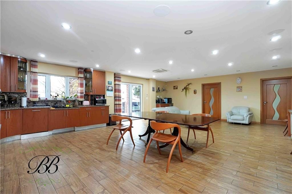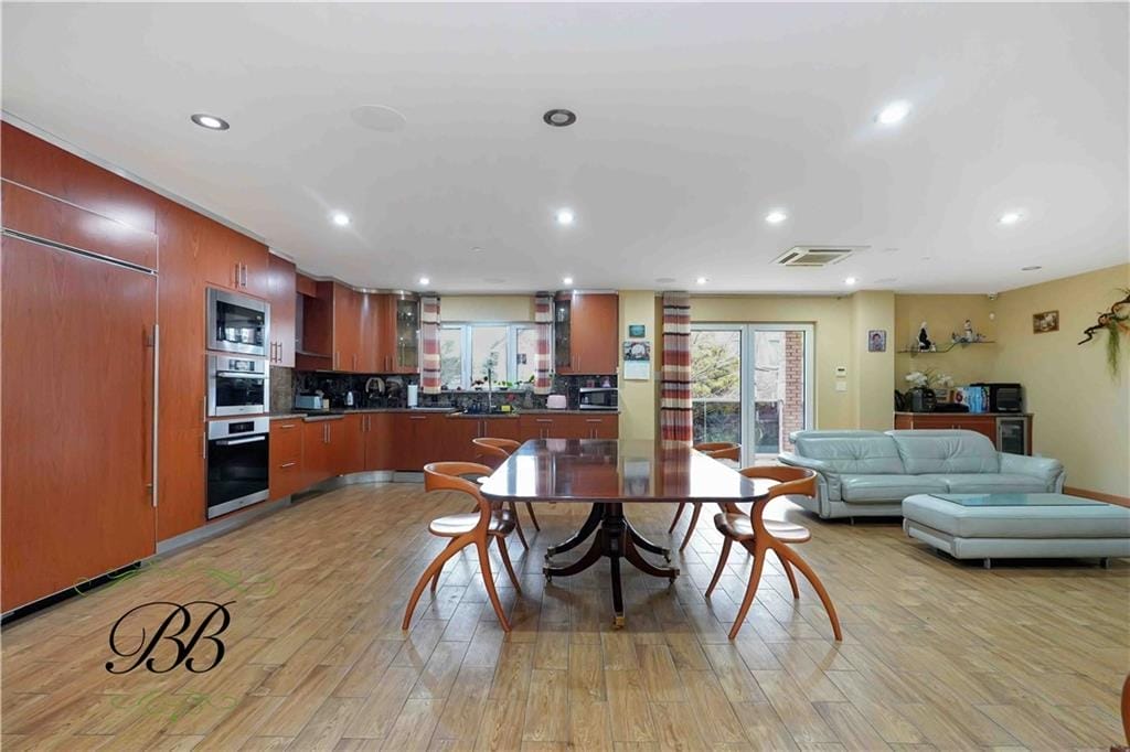 This luxurious 12,000 Sq. Ft home sits on a spacious 88 x 101 sq ft lot. Features 4 floors and finished basement, 9 bedrooms, Italian kitchens, & 7 baths. The first floor has a foyer with two elevators, an elegant stainless steel and glass staircase, walk-in closet, half bathroom, a huge recreation room with a fireplace and sliding doors leading to the beautiful backyard.