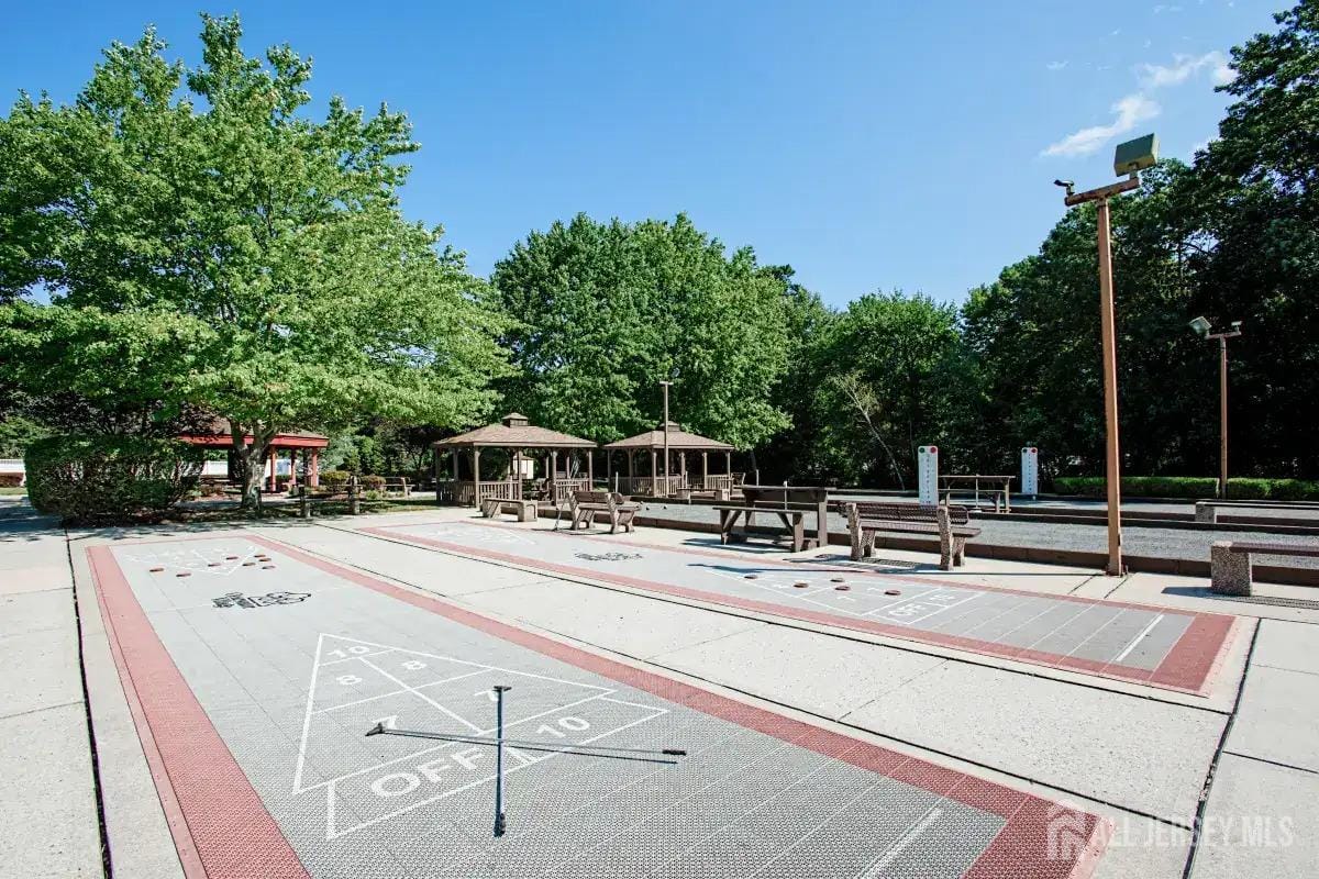 Bring your imagination to this spacious Hudson model in charming Clearwater Village- Central NJ Best Value in Adult Community Living. Situated on a corner lot with lush landscaping, this well located adult community home features updated windows and appliances, newer roof and HVAC systems and sprinkler system. Living room and Dining room features vaulted beamed ceiling, spacious kitchen with additional dining or gathering area and many closets throughout for optimum storage. Primary bedroom features spacious ensuite bath and double closet. Second bedroom is perfect with 2 closets. Upgraded blinds and shades and valences in every room. Separate laundry room features washer and dryer, 2 decks-front and back and convenient storage shed. Clearwater village features clubhouse and outdoor pool with tables and chairs, Bocce, shuffleboard, and work out room. Convenient on site management. Minutes from shopping and dining options. Affordable living at its finest!