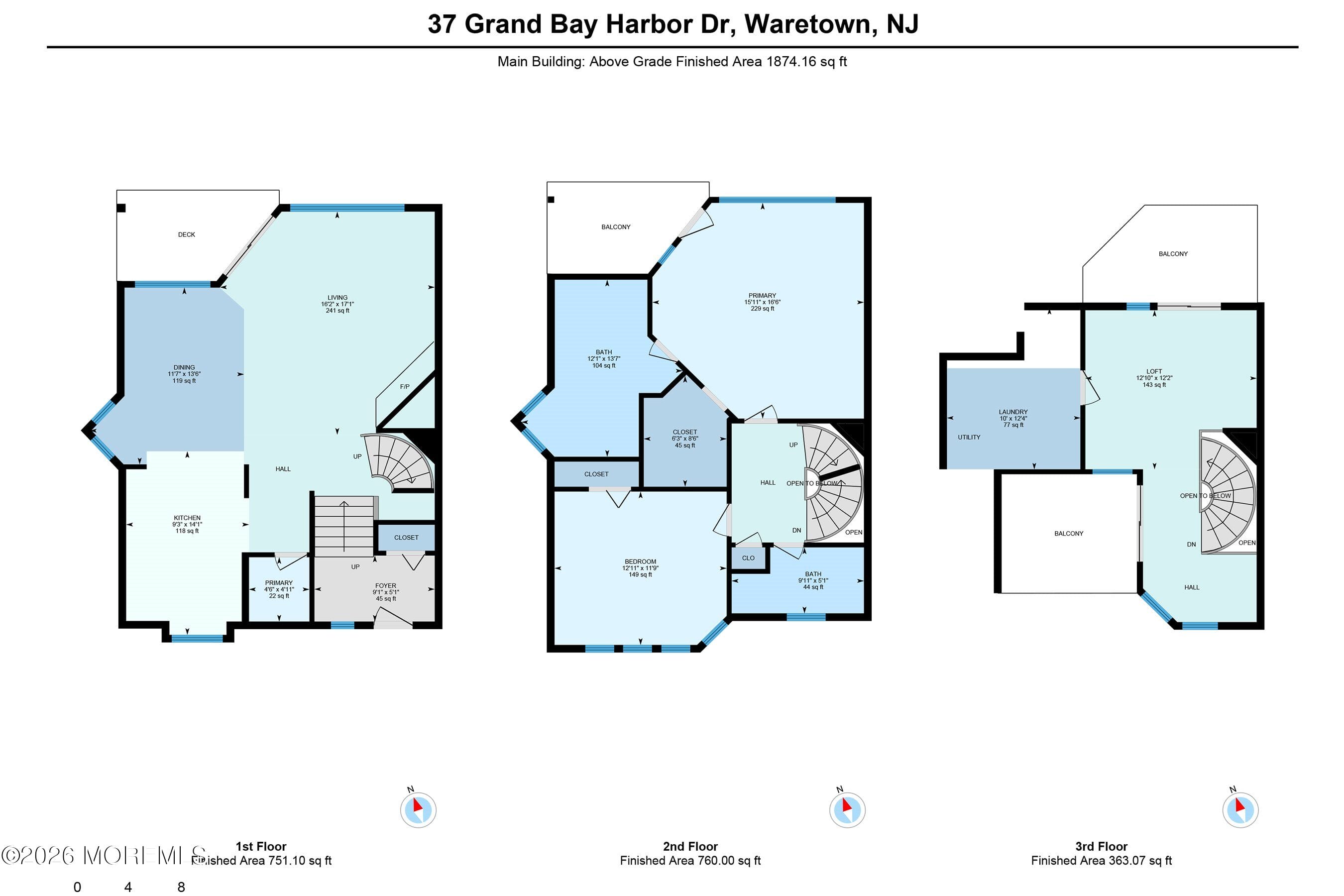 Continuing up another spiral staircase, the third-floor loft offers incredible versatility, ideal as an additional bedroom, entertainment space, or private retreat. This level features two balconies, one overlooking the front of the property with unique back-bay views, and the other showcasing elevated, sweeping vistas of the harbor and open bay.