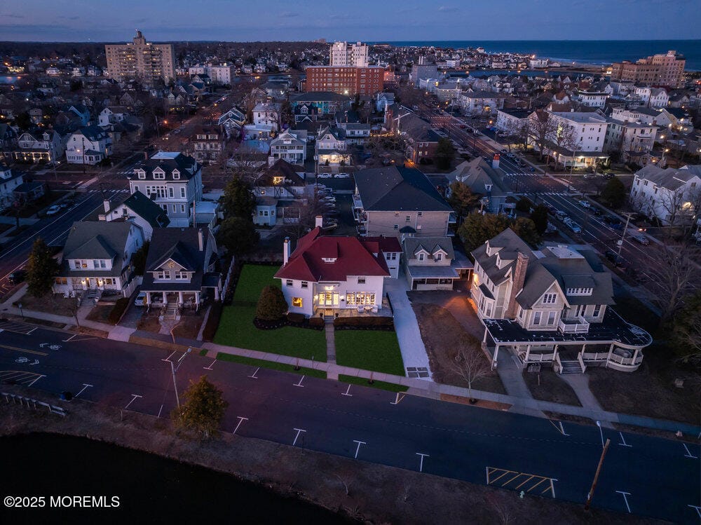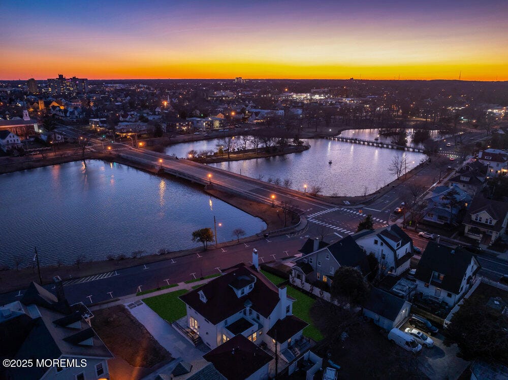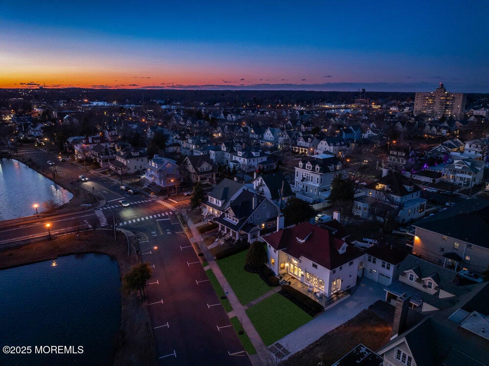 Welcome to this iconic property with stunning 180-degree views of Sunset Lake. This 5-bedroom, 3.5-bathroom home spans over 4,000 sq. ft., just three blocks from the Atlantic Ocean, Asbury Boardwalk- vibrant dining & entertainment. Enjoy the beauty of the front porch overlooking the lake, a solarium that fills the home with natural light, two cozy gas fireplaces and a modern kitchen with quartz counters and Thermador range. The primary suite includes a luxurious ensuite with an oversized shower and custom walk-in closet. The generous backyard is perfect for entertaining with a new outdoor shower, fencing, and landscaping. A separate guest house with its own address offers lake views, a bright kitchen, and a beautifully appointed bathroom. Recent upgrades make this home a true masterpiece.