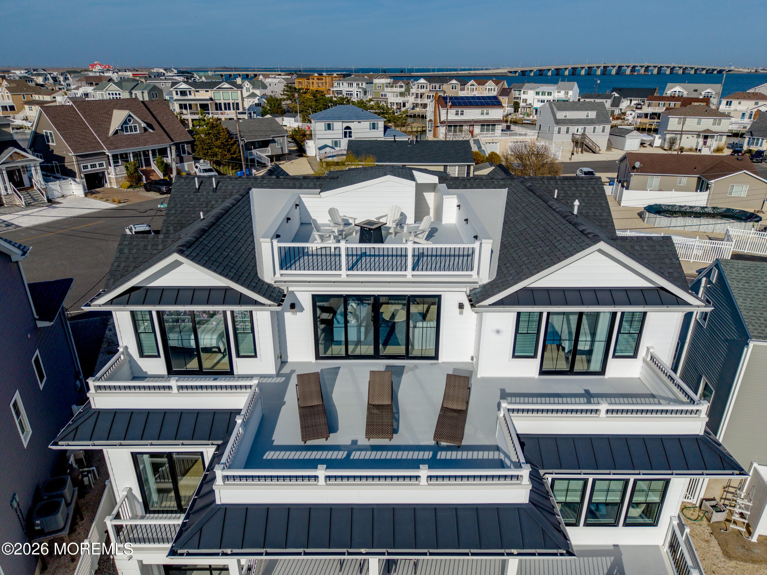 Outdoor living is nothing short of breathtaking. Expansive multi-level fiberglass decks and a spectacular rooftop terrace that captures panoramic bay views, offering an unparalleled setting for quiet relaxation or spectacular sunset entertaining. The property is fully outfitted for the waterfront lifestyle, featuring a new vinyl bulkhead and large private dock with direct bay access in minutes.
