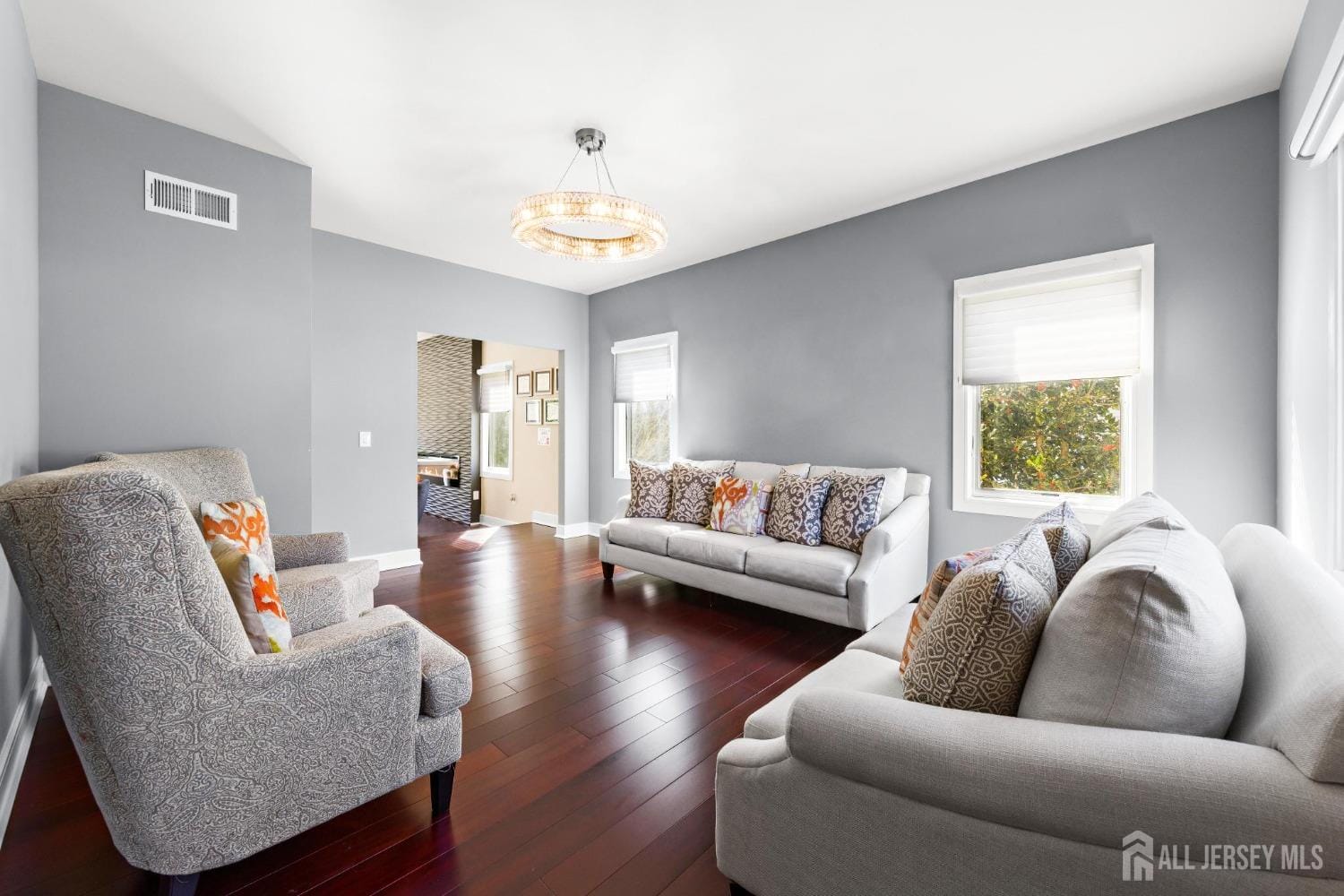 Experience the pinnacle of luxury living in this 6,000+ sqft home. This stunning high-end residence, meticulously crafted in 2017, epitomizes modern elegance with unparalleled amenities. Prepare to be captivated as you step into this architectural masterpiece boasting a wealth of opulent features designed to elevate every aspect of luxurious living. You are immediately welcomed by a foyer that could grace the pages of a chic magazine. A gourmet chef’s dream kitchen awaits, adorned with top-of-the-line Wolf appliances. From the gleaming countertops to the hidden pantry, every detail has been thoughtfully curated. The effortless transition from the gourmet kitchen and inviting family room, boasting a fireplace and expansive windows, to the refined dining room and spacious living room with motorized shades, fosters an open and welcoming ambiance ideal for social gatherings. The kitchen seamlessly flows into the expansive multi-level outdoor deck, providing the perfect setting for entertaining guests or enjoying a quiet moment overlooking the tranquil waterfall cascading into the picturesque pond, all enveloped in complete privacy. Ascending to the upper level, indulge in the lavish comfort of 5 bedrooms, each exuding refined luxury and sophistication. The magnificent primary suite beckons with its own sitting area, balcony access, and panoramic views of the surrounding landscape. Unwind in the spa-like oasis of the master bathroom, complete with a steam shower enhanced with aromatherapy, heated floors, double sinks, and a sumptuous soaking tub. Descending to the lower level, you’ll discover a haven of versatility, ideal for multi-generational living, equipped with a full kitchen complete with Wolf appliances and a dining area plus living room and cedar closet. This space offers endless possibilities for accommodating guests with two generously appointed bedrooms and 1.5 bathrooms, along with exterior access. This home is not just a residence; it’s a sanctuary where every detail has been meticulously crafted to exceed the expectations of the most discerning homeowner. Immerse yourself in the ultimate luxury lifestyle, where state-of-the-art surround sound envelops you in an atmosphere of unparalleled comfort and elegance. With its unparalleled blend of modern sophistication, high-end finishes, and unparalleled amenities, this extraordinary property presents a rare opportunity to own a slice of paradise.