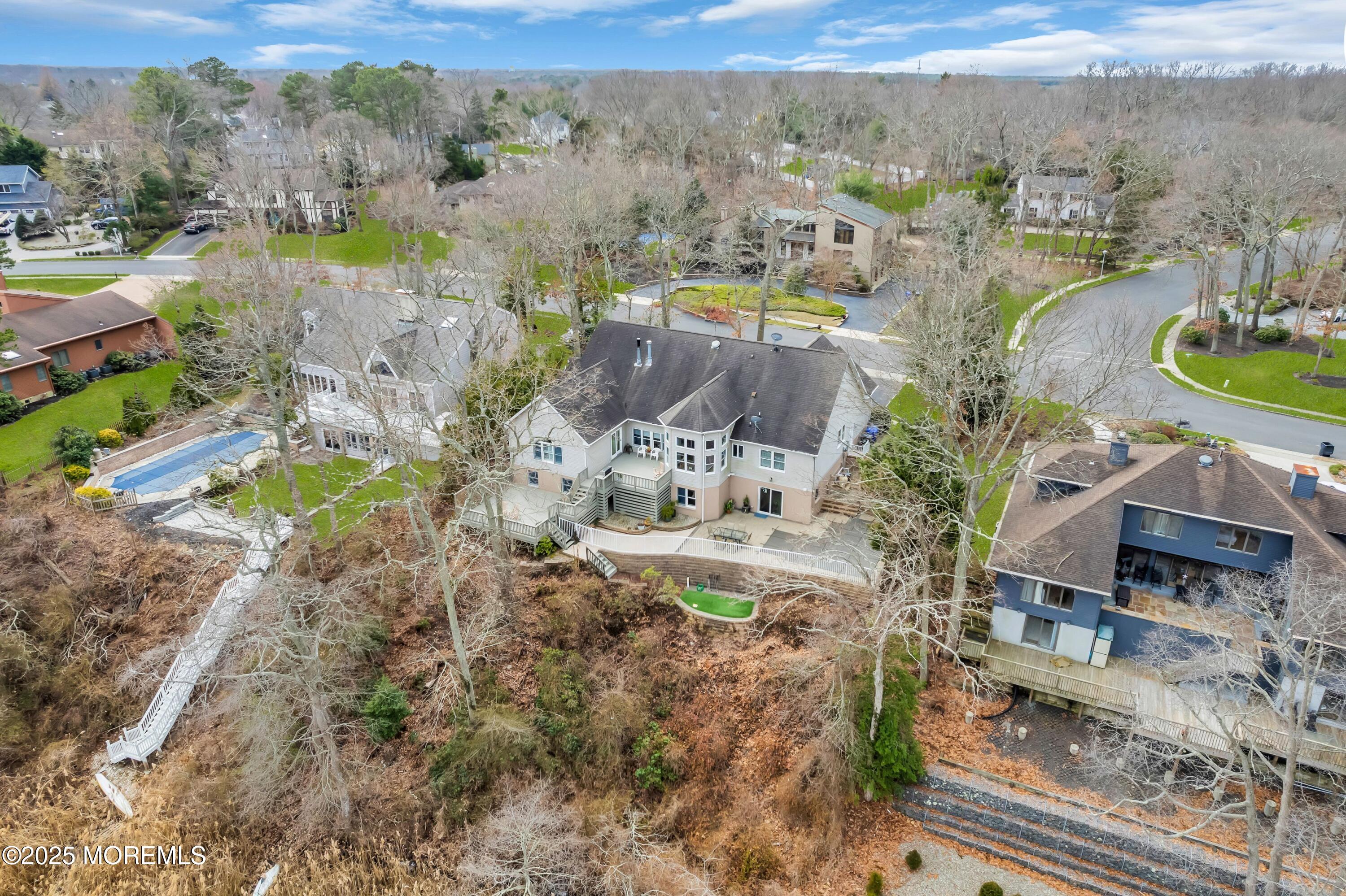MANASQUAN RIVERFRONT – Palatial expanded ranch elegantly appointed resting high on a bluff overlooking Manasquan River . Waterfront views from most rooms of this majestic home . Home offers decorative mouldings & trim . Kitchen has granite counter tops, center island ,cherry cabinets , Kitchen Aid & Viking appliances & breakfast nook . Multi – dimensional fireplace warms the LV ,DR,FR & Kitchen . Upper and lower decking . Full finished walk out basement to terrace with 10×18 inground heated pool with 2 spas features include in-law suite ,separate entrance ,wet bar with entertainment and gaming room .Belgium block retaining wall . There are mahogany and oak floors throughout . New plantation shutters installed & Brand New pool liner Open layout with all modern amenities